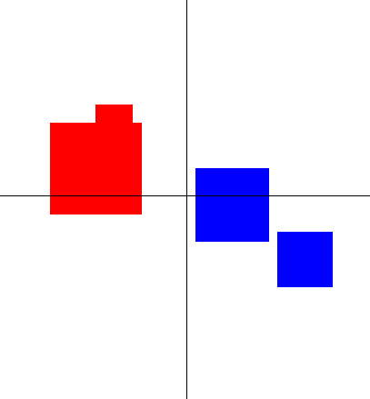 Funktio piirtää yhden neliön, jonka täyttöväri riippuu siitä onko aloituspisteen x-koordinaatti positiivinen vai negatiivinen. Negatiiviselle x-koordinaatin